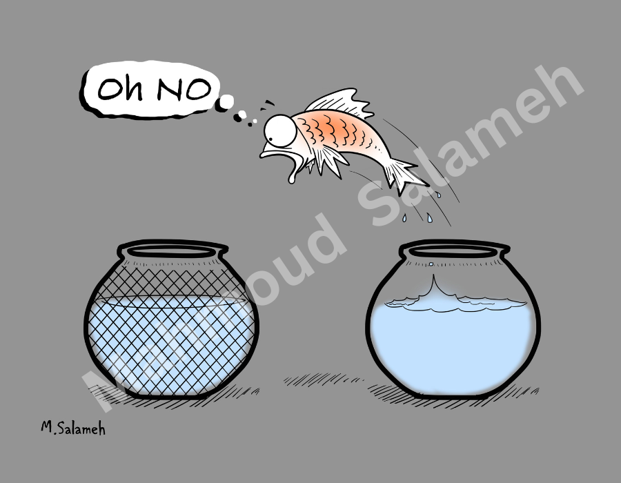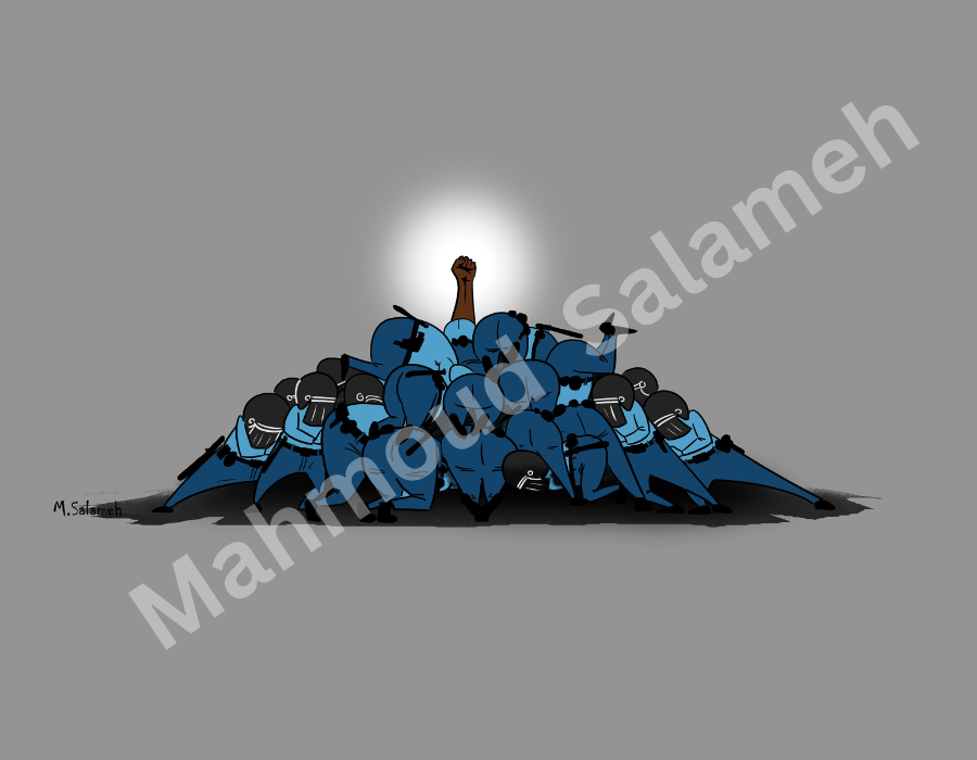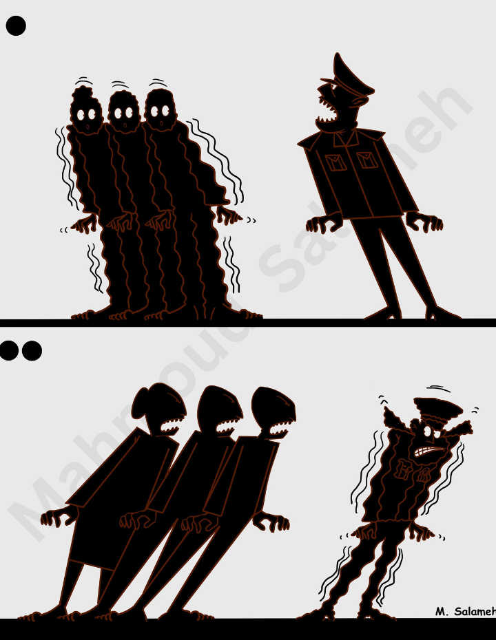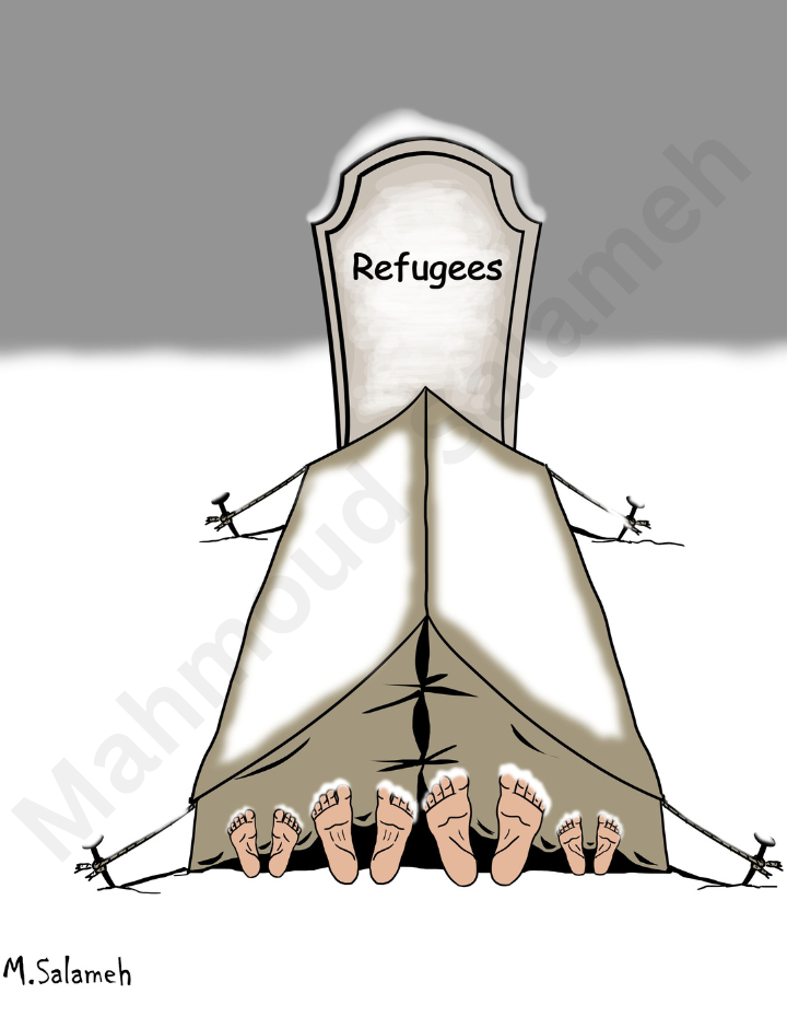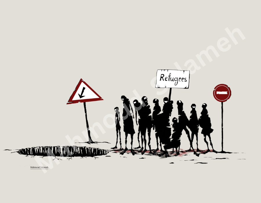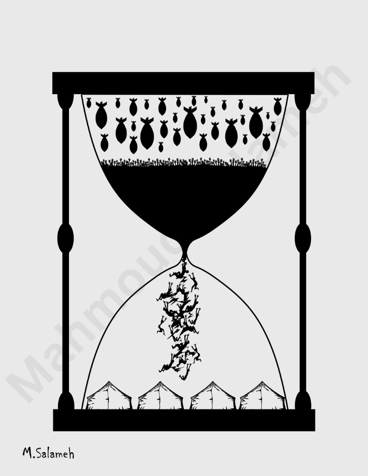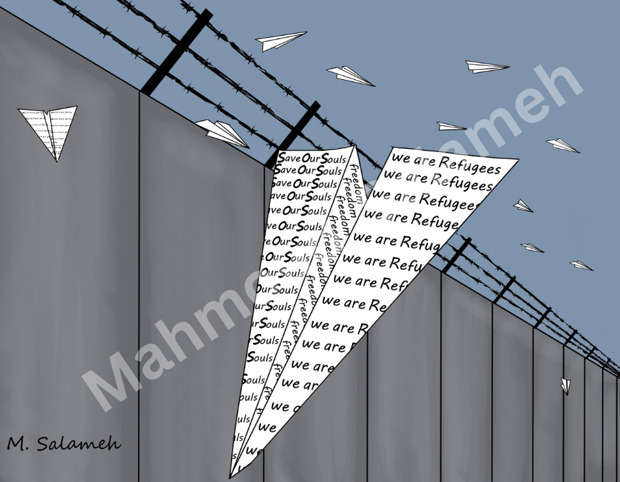 In an interview with Yanis Kontos from 2015 Salameh observed: I respect cartoons and they respect me too. The brevity of the cartoon goes with the difficulties of being forced from one country to another to stay alive. Salameh is the child of Palestinian refugees and he grew up in Yamouk camp in Damascus. He arrived in Australia in 2012 and is now a citizen